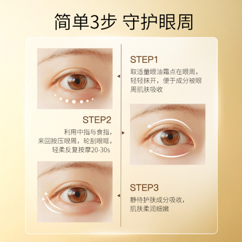 ◎保湿:持久润泽眼部肌肤,改善干燥状态,令眼周皮肤水润饱满,焕发自然光泽。