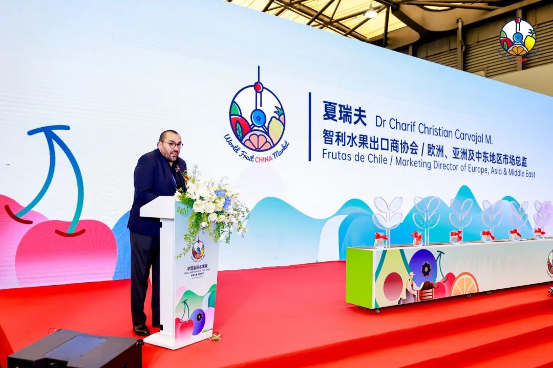 开幕式上,主办方中国食品土畜进出口商会于露副会长、中国果品流通协会的张庆丰副会长、以及智利水果出口商协会欧亚及中东地区市场总监夏瑞夫先生,分别发表了致辞。三位嘉宾在致辞中强调了本展会的重要性和对行业发展的推动作用,同时表达了对参展企业和专业观众的感谢与期待。